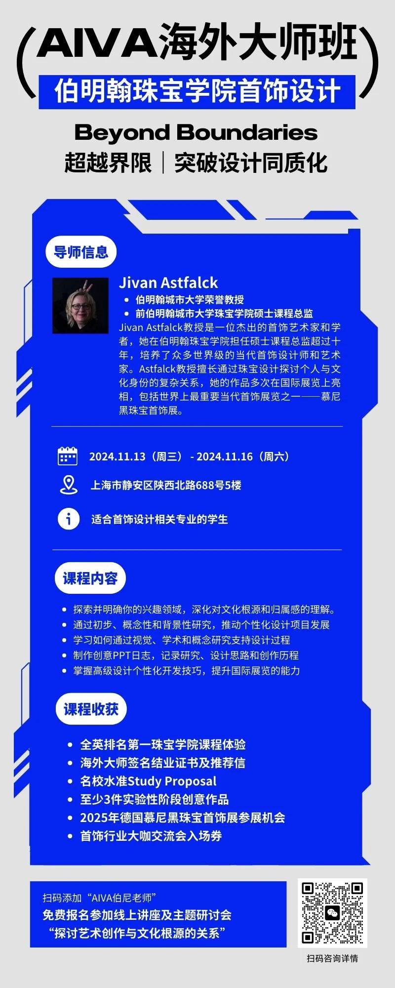 Jivan教授擁有多年的慕尼黑參展經(jīng)驗,她將在課程中幫助學(xué)員達到國際展覽作品的標(biāo)準(zhǔn),優(yōu)秀作品將優(yōu)先參與2025年慕尼黑國際珠寶首飾展作品評選。