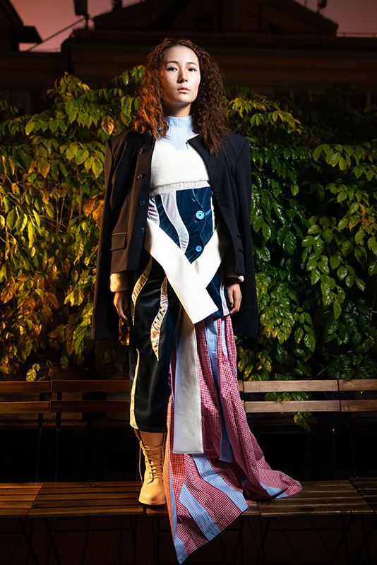 Vicky Miao is a fashion designer. She is passionate about exploring herself and her life, being eager to share these feelings with the audience. For an introverted person, fashion design is a way to display herself, because garments are unspoken language to show the ideas that are not easily noticed by people in an exposed but subtle way.