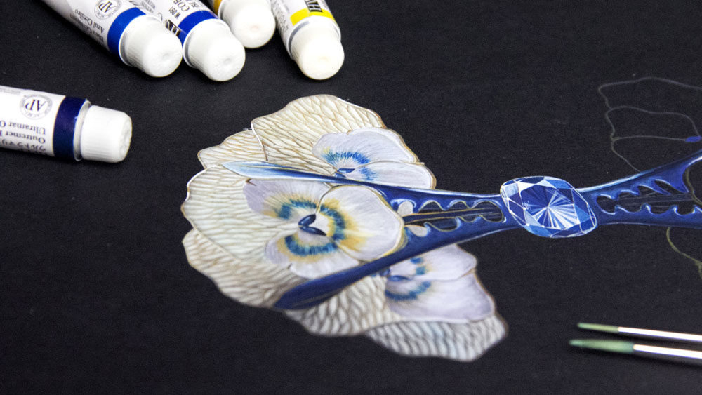 南子老師出身于設計背景,擅長珠寶手繪。有豐富的珠寶手繪執(zhí)教經(jīng)驗,并且目前擔任首飾品牌“無塵”的設計師和主理人之一。能夠充分把珠寶手繪和行業(yè)實踐結(jié)合起來,使得所教能所用。